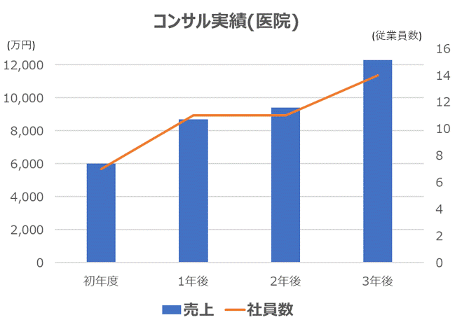併せて、人事評価制度にも理念を取り入れて、あるべき姿とやるべきことが明確化したことで、医院のオペレーションの効率化が実現でき、事業規模と売上が拡大しました。
